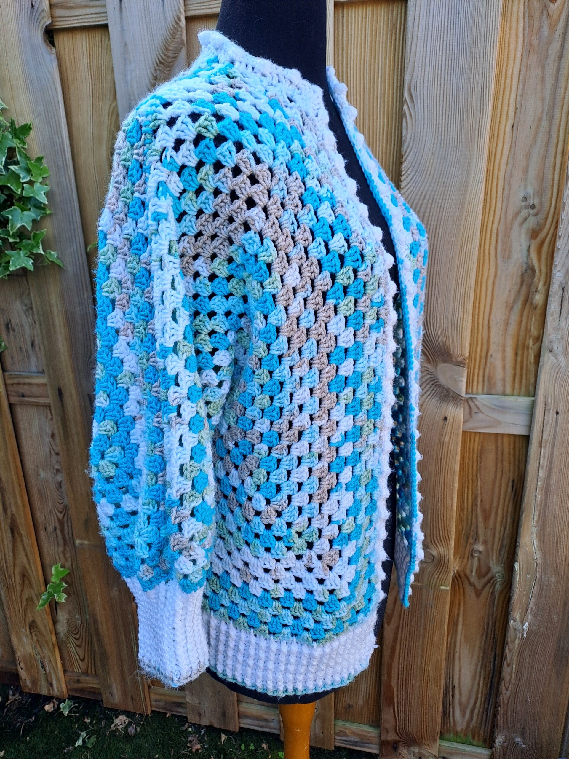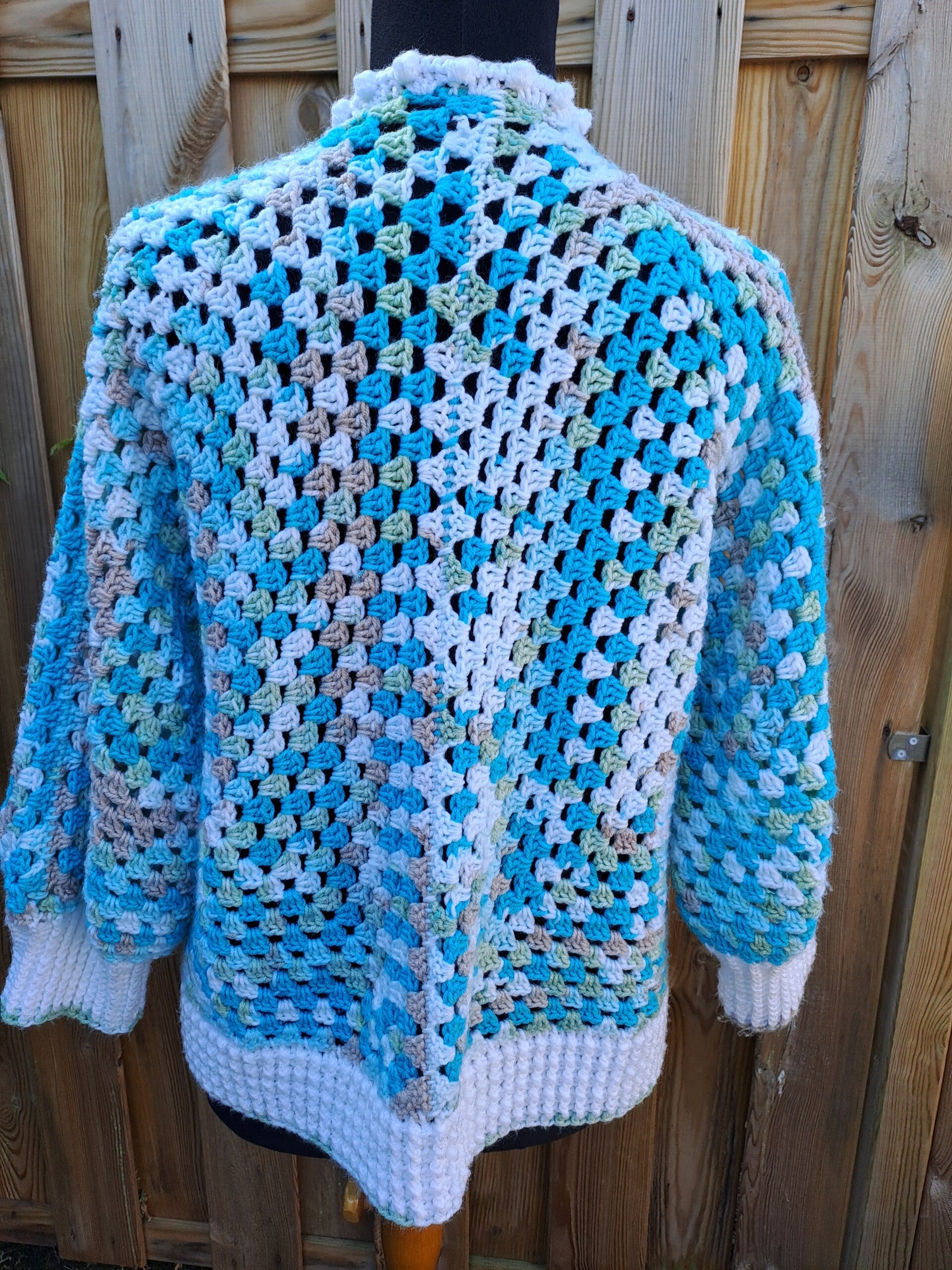 Gaaf gemêleerd vest met wit. Gehaakt als 1 deel. Gehaakt met mooi verloopgaren.