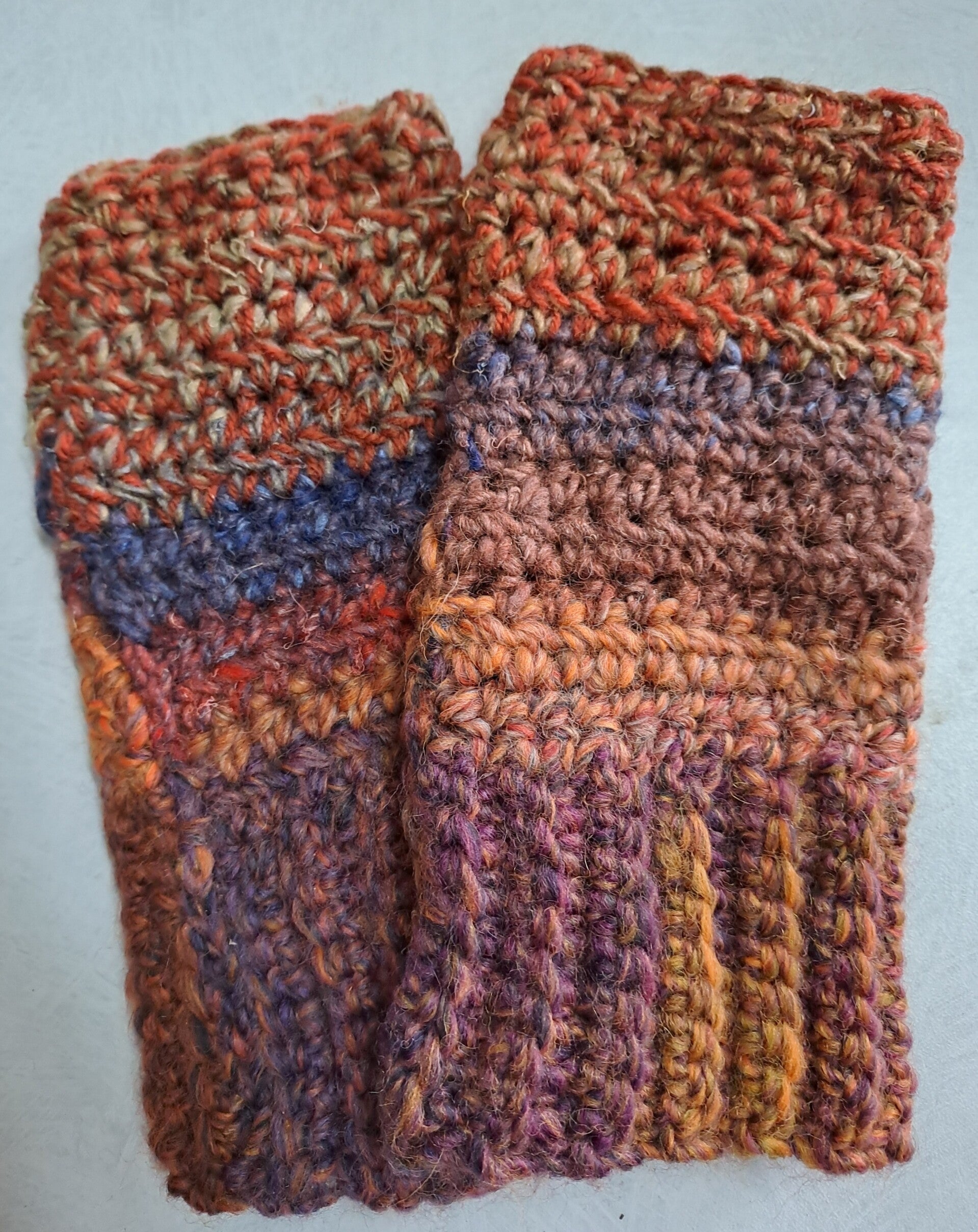 Heerlijk warme vingerloze handschoenen. Handig bij het gebruiken van je telefoon of pinnen. Bruin gemêleerde acrylwol.