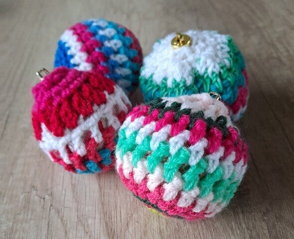 Een boom vol met vintage gehaakte ballen of aan een tak of kerststuk. Een eyecatcher bij jouw kerstdecoratie.